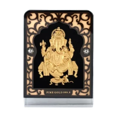 This premium decorative frame showcases a finely crafted 24K gold (999.9 purity) foil artwork, set against a rich velvet-finish background that enhances its elegant and auspicious appearance. The traditional arch-inspired design highlights intricate detailing and timeless craftsmanship.