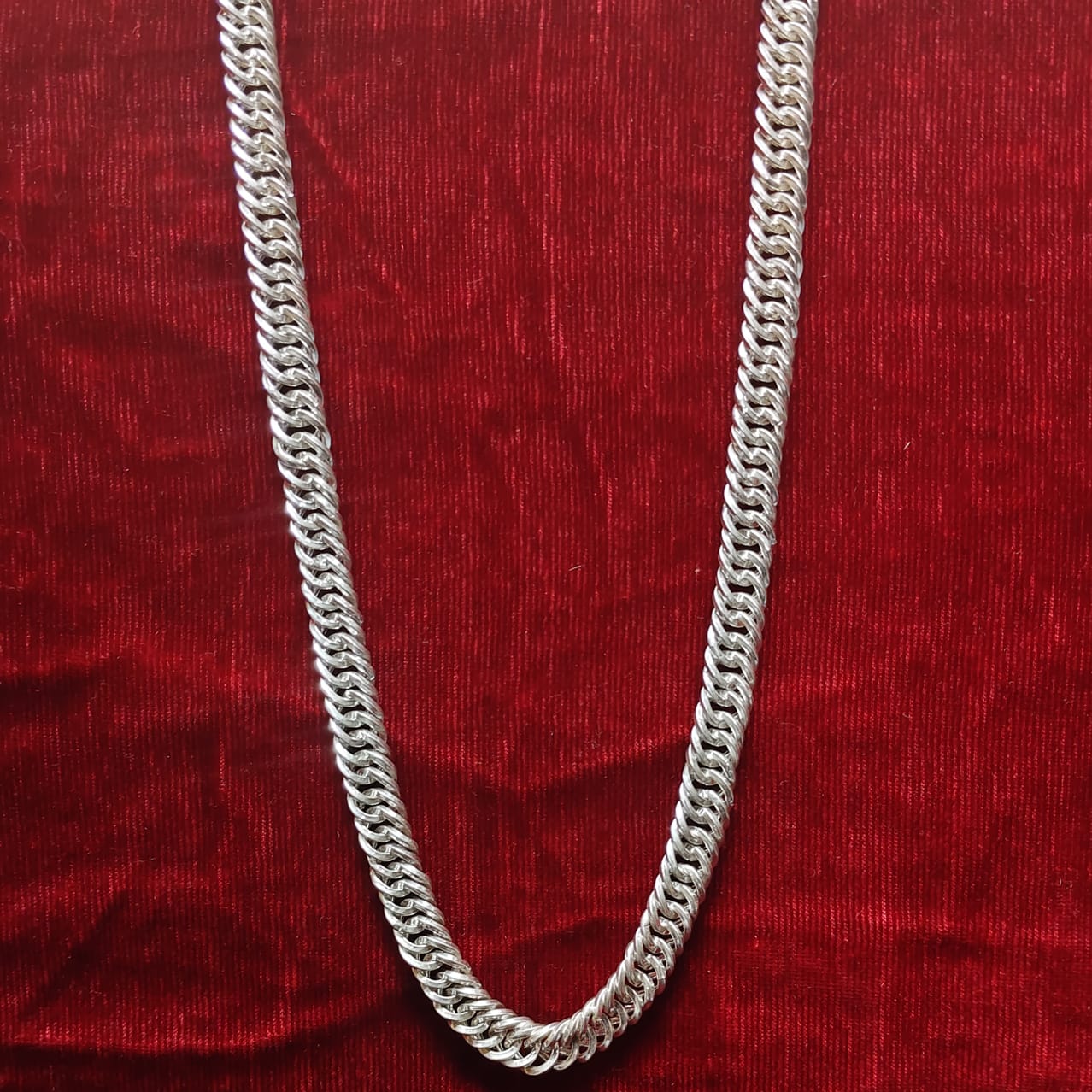 Upgrade your accessory game with this pure silver men’s chain, crafted for durability, comfort, and timeless style. Made from high-quality silver with a polished finish, this chain is lightweight, skin-friendly, and easy to wear. Its versatile design makes it ideal for daily wear, office styling, festive occasions, or pairing with pendants. A must-have addition to every man’s jewellery collection. Material: Pure Silver